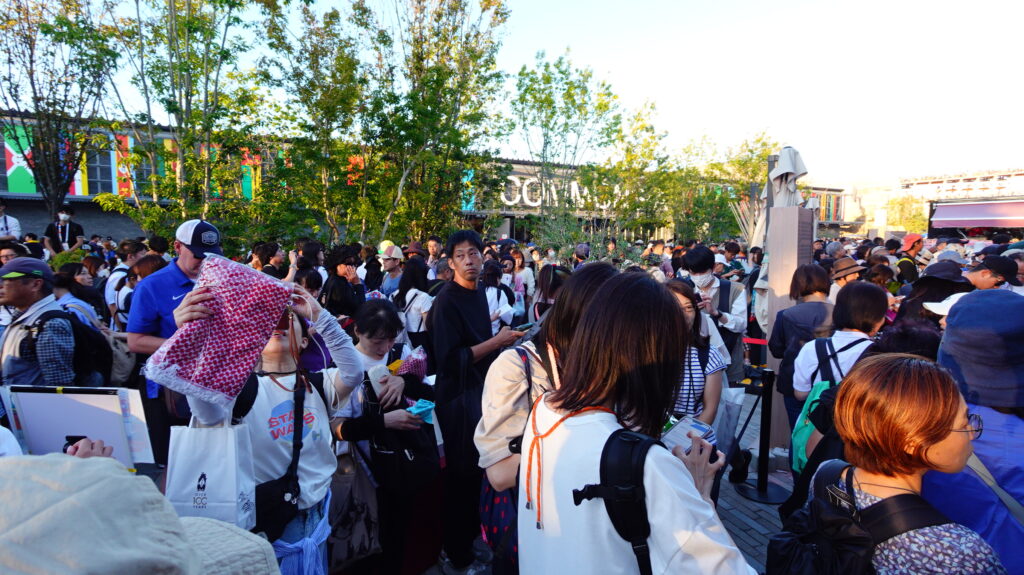 投稿者さんは「なんで頭にカメラつけたらあかんだ、その危険移動全くわからん」と、このルールの意図に疑問を呈しています [02:20]。安全のためのルールとはいえ、来場者にとって理解しにくい部分もあるかもしれません。会場ならではの細かいルールについても知ることができる、興味深いシーンでした。