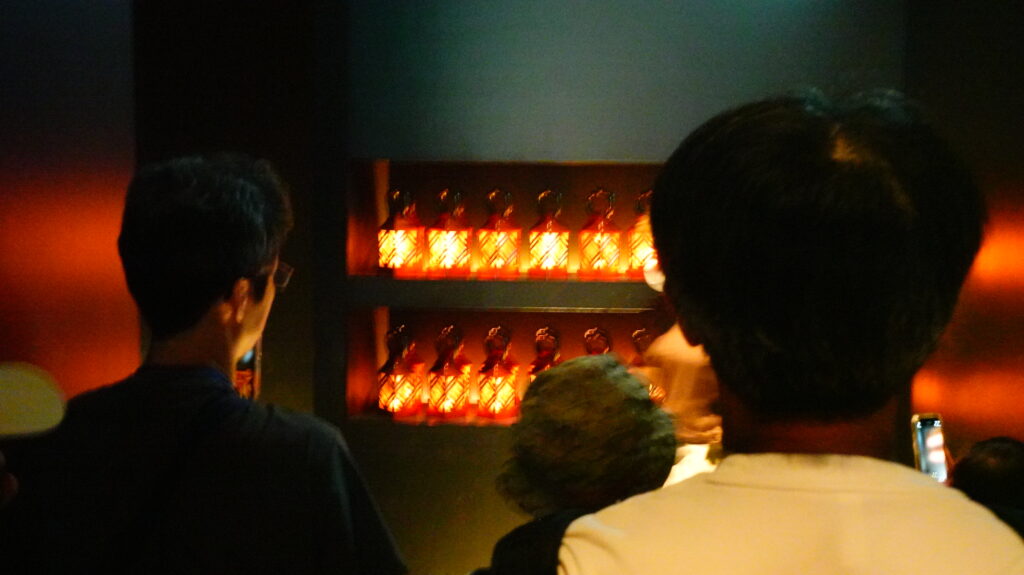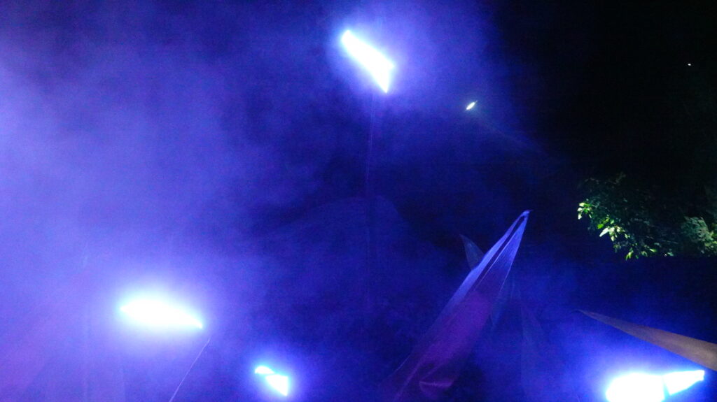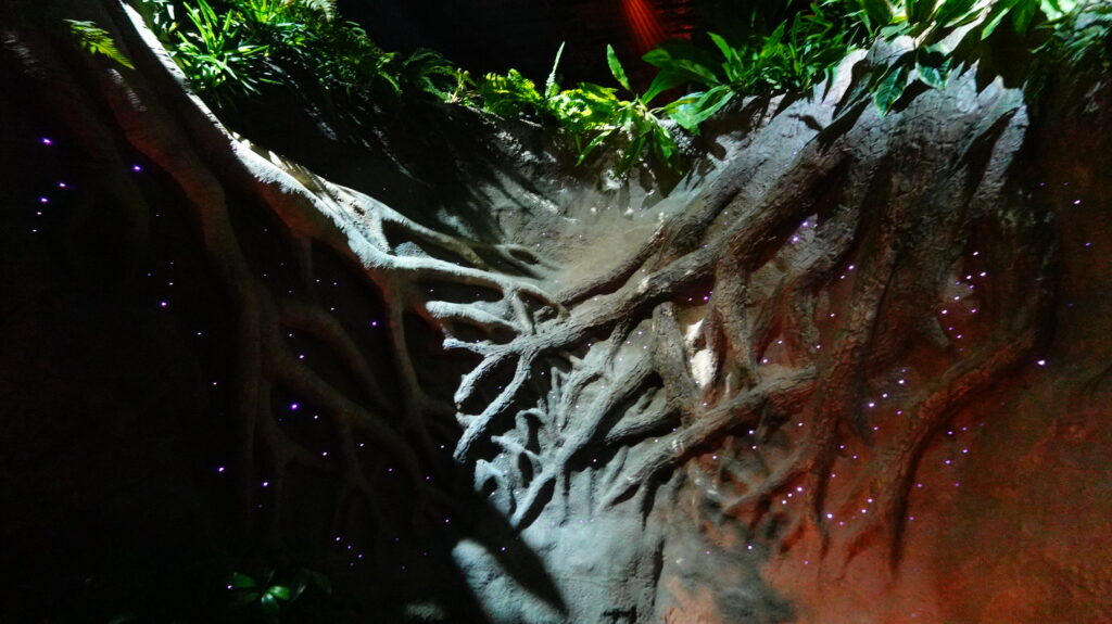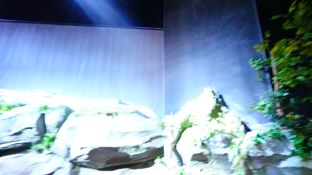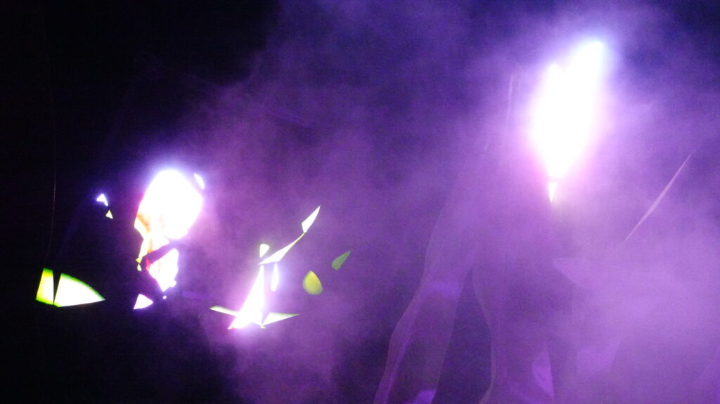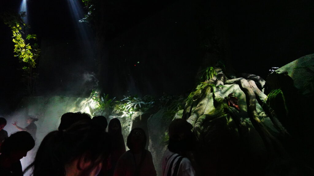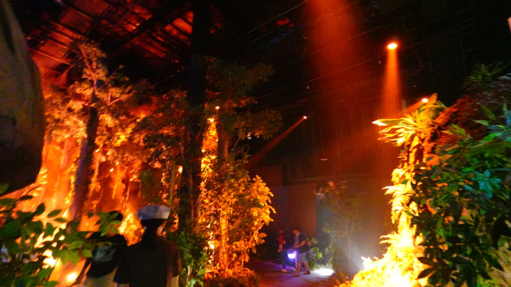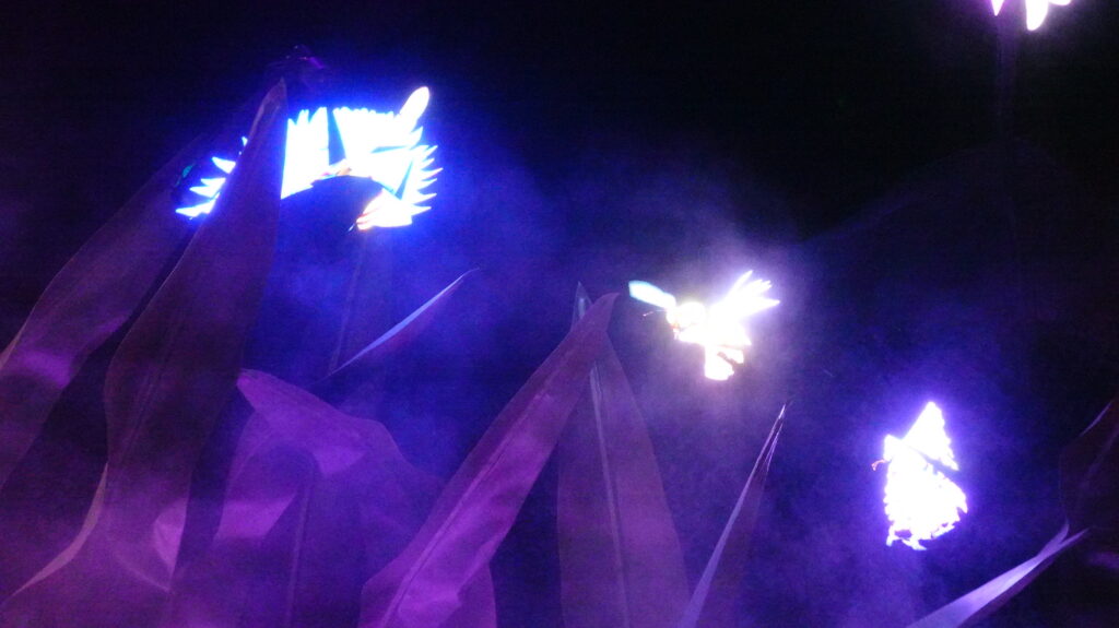 「皆さんが集めた命の物語のおかげでたくさんの記憶が蘇ってきました」というマザー・ツリーの声とともに、体験はパフォーミングシアターへと進みます [36:24]。