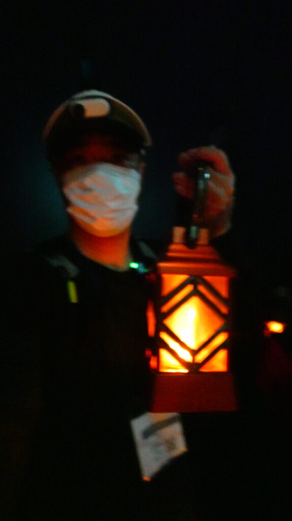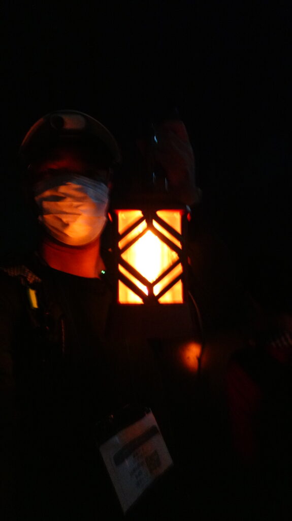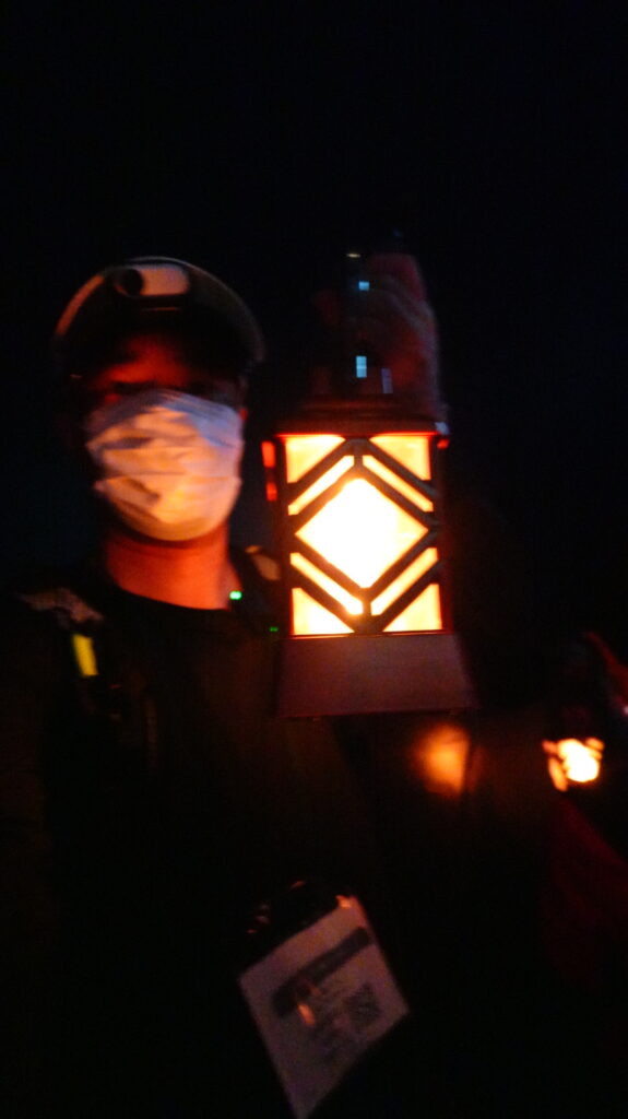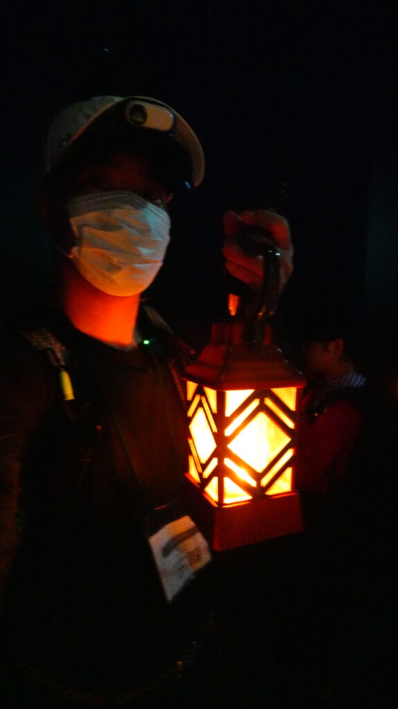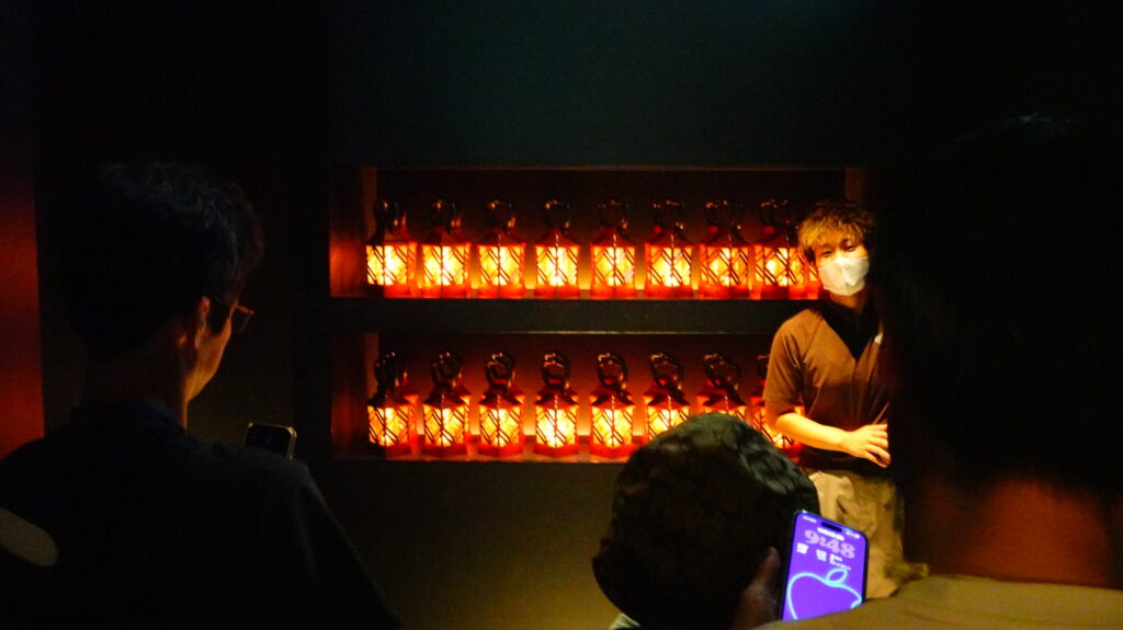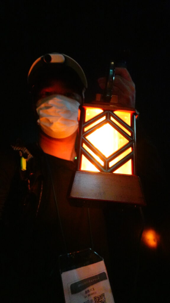体験の鍵となるのが、このランタンです。 スタッフの方から、ランタンの丁寧な使い方が案内されています [05:34]。