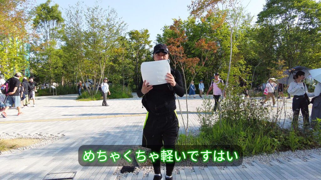 3. 持ち運びの工夫 A2は保冷バックとしても優秀で、飲み水も冷やしながらシンプルに持ち運べます。予備のボトルも左右に収納可能で、フロントに持つことで飲み物の出し入れもしやすく、万博での移動に最適です。[49:11]