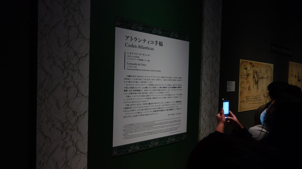 - 紙にペン、インク、水彩で描かれた手稿で、数学、天文学、土木工学など多岐にわたる知識や発想が旋律のようなリズムで記されています。この手稿はレオナルドの思考の純粋な記録として重要視されています。
