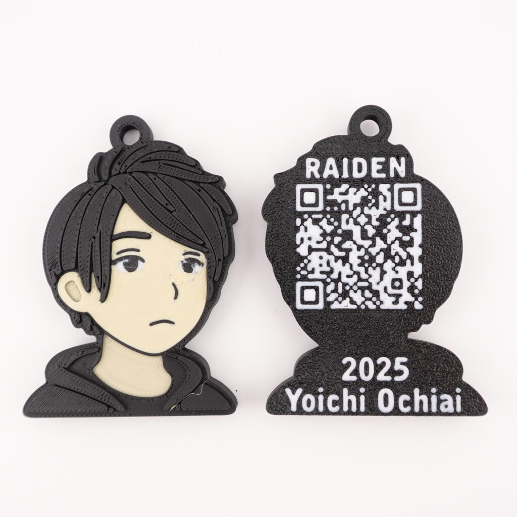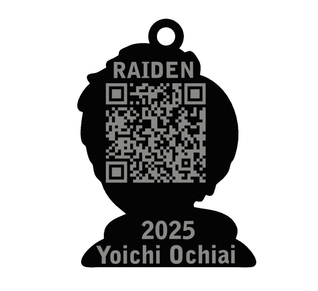 さらに、キーホルダーの裏面には「RAIDEN QR」のQRコードを彫り込むという、遊び心あるギミックも組み込まれています [39:08]。