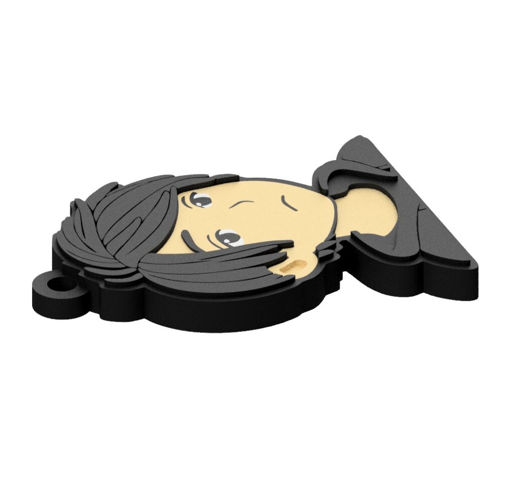 キーホルダーを3Dプリントで制作する場合、各色を別パーツとして重ねる「多層構造」にする必要があります。
