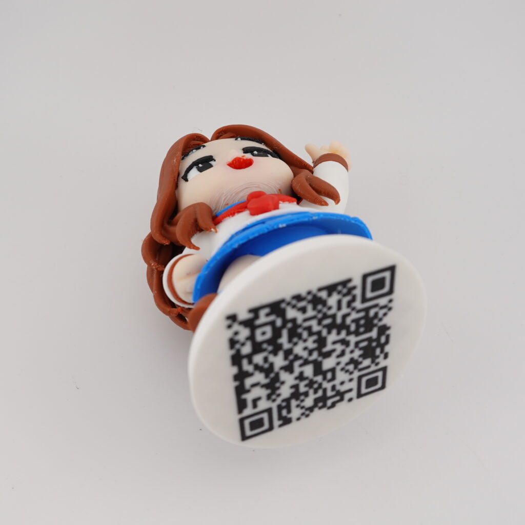 なんと、3Dプリントで描かれたQRコードが! ただの置物としてだけでなく、デジタルとリアルをつなぐハブとしての機能も持たせています。こうした「遊び心」を形にできるのも、3Dプリンターの醍醐味ですね。