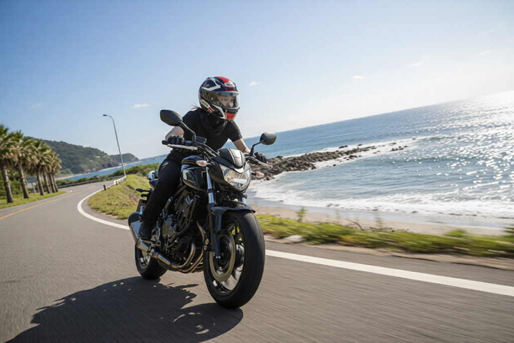 これ、他人事じゃないですよね。 熱中症で一番怖いのは、「判断力が鈍ること」です。脳の温度が上がると、ブレーキの反応がコンマ数秒遅れます。その一瞬がバイクにとっては命取りになる。