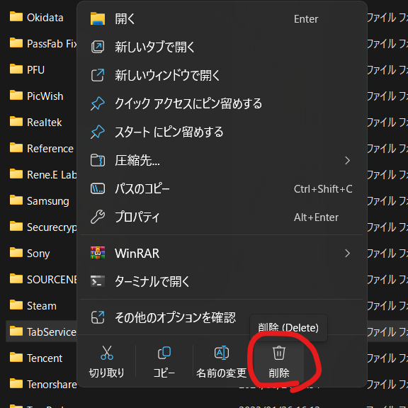 ※タスクマネージャーで終了させていないと「ファイルが開かれているため削除できません」と出るので注意してくださいね。
