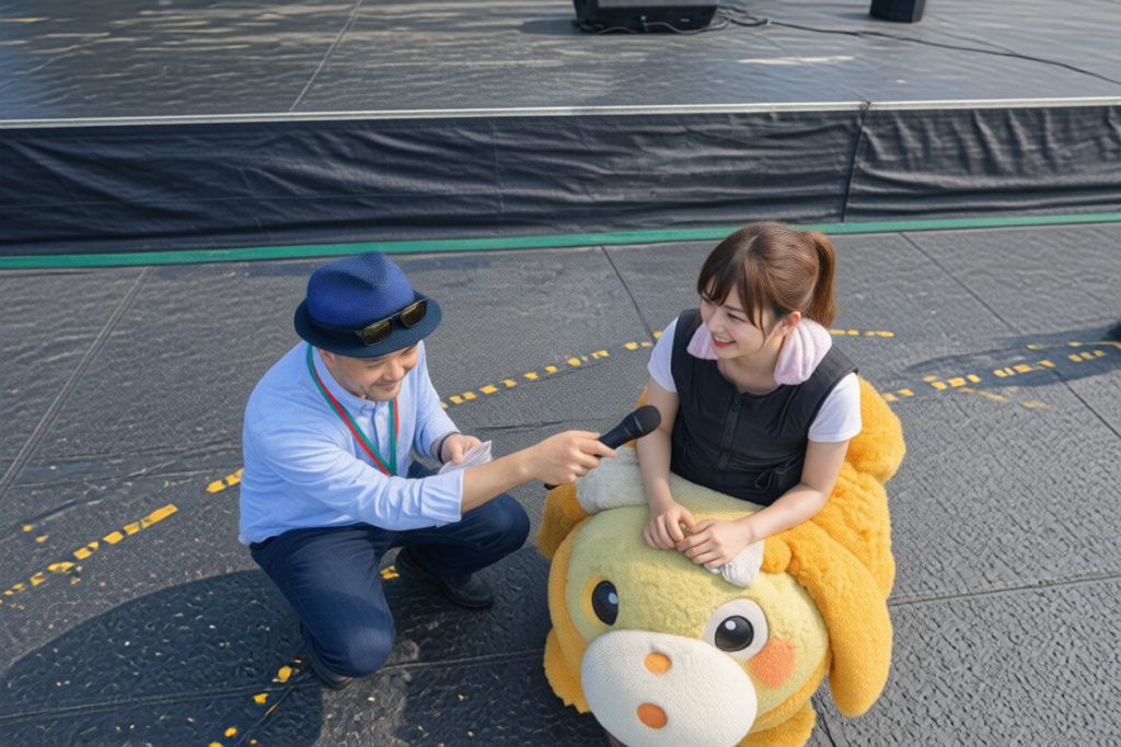 先日、気温35度を超える「ゆるキャラまつり」の現場で、私たちの自信作である面水冷服「人間エアコン」の真価が問われる瞬間がありました。